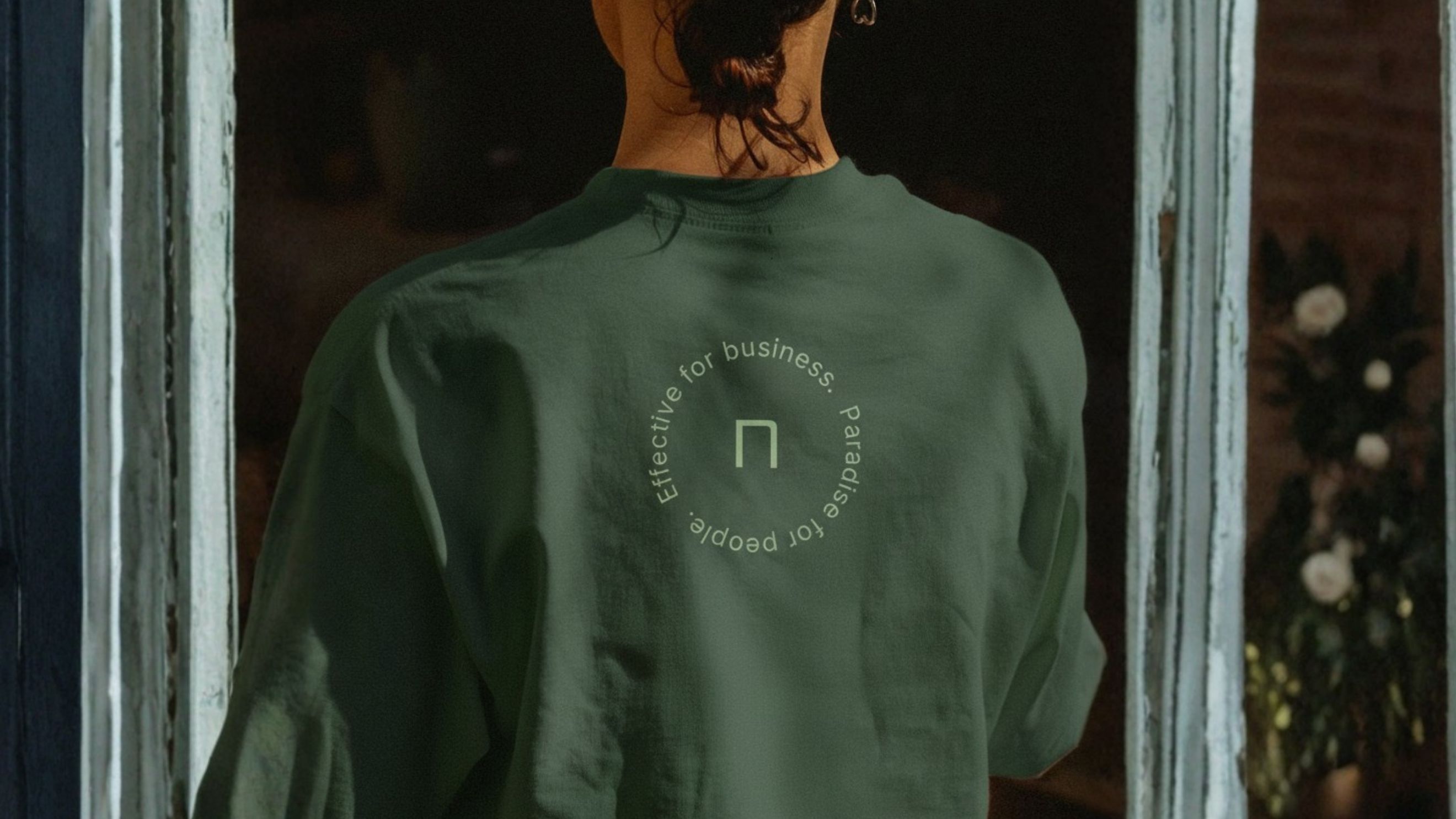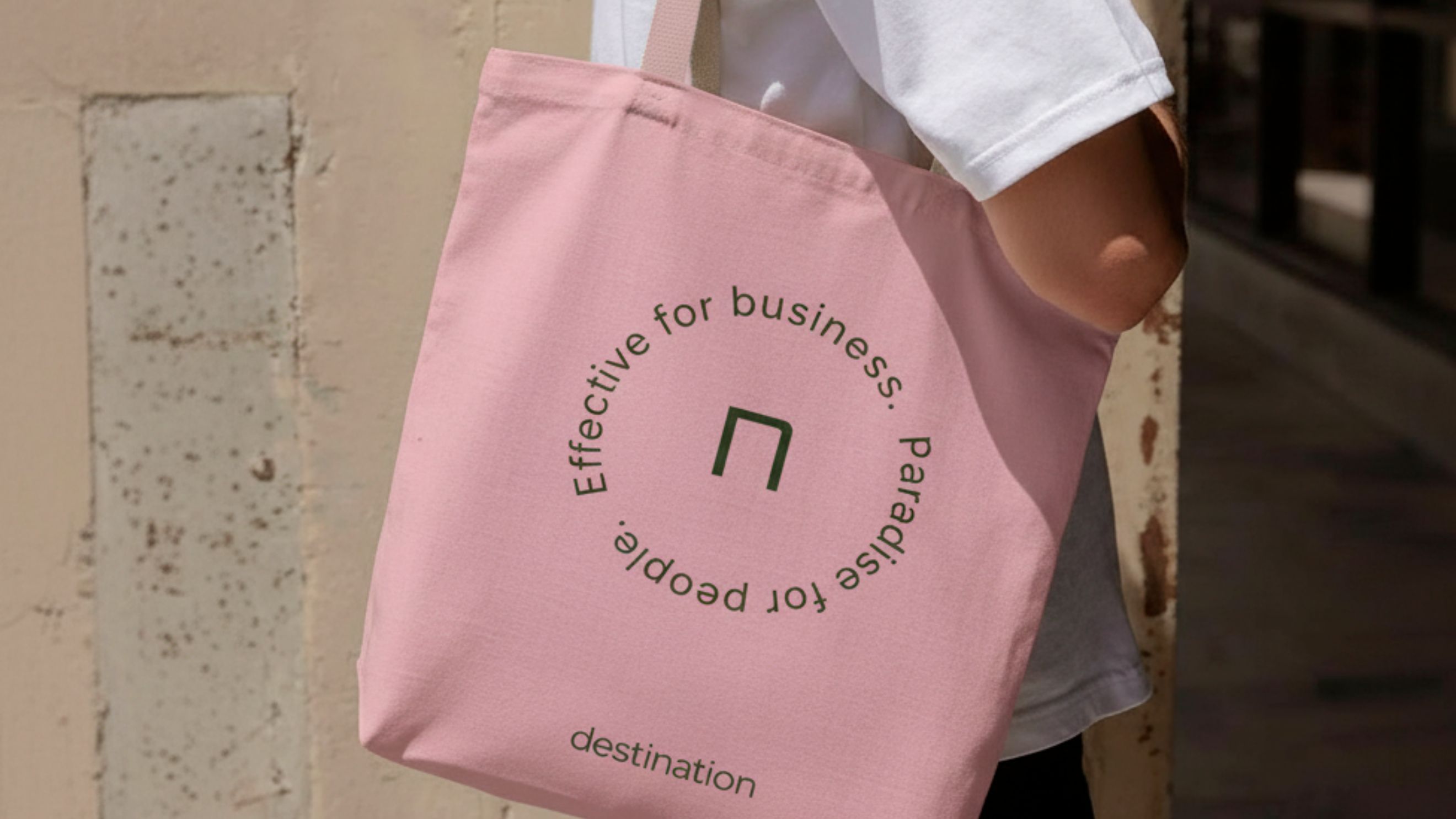 Identiteten balancerer struktur og menneskelighed. De grønne nuancer skaber ro og stabilitet. Den pink accent tilfører energi og fremdrift. Sammen understøtter de ambitionen om at forene business og paradise.