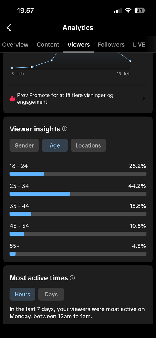 Det betyder, at videoerne ikke bare blev set, de skabte handling. Mange opfatter stadig TikTok som en platform for teenagere, men dataen fra vores profil viser en dansk, voksen målgruppe, der engagerer sig aktivt. Det er ikke kun reach. Det er relevant reach.