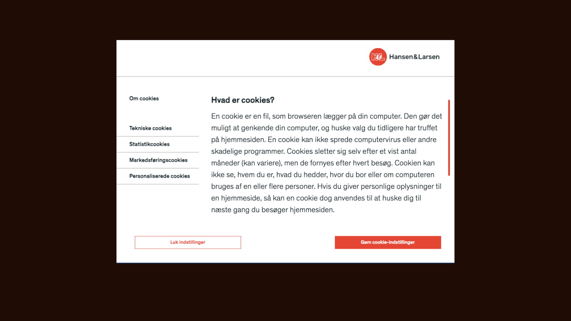 Cookie-bar med valgmuligheder